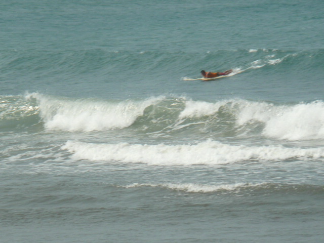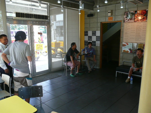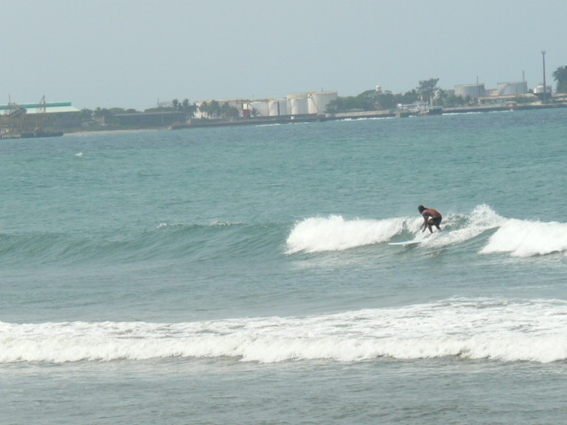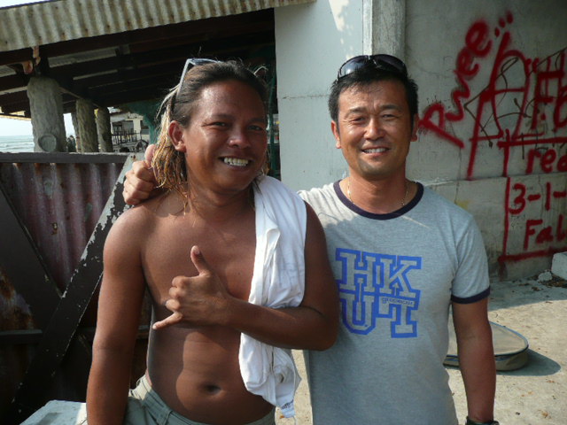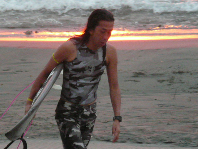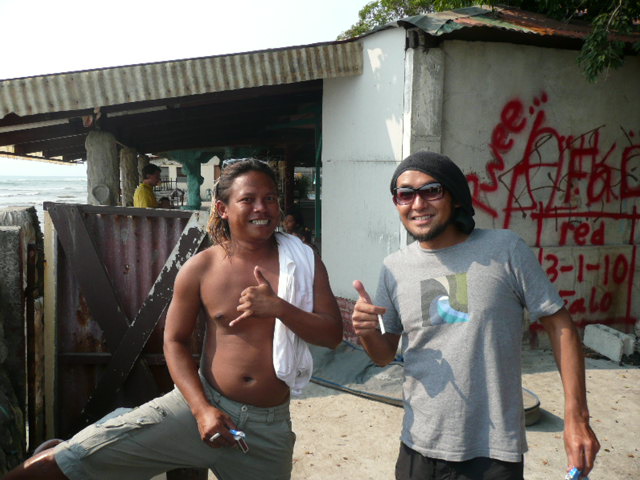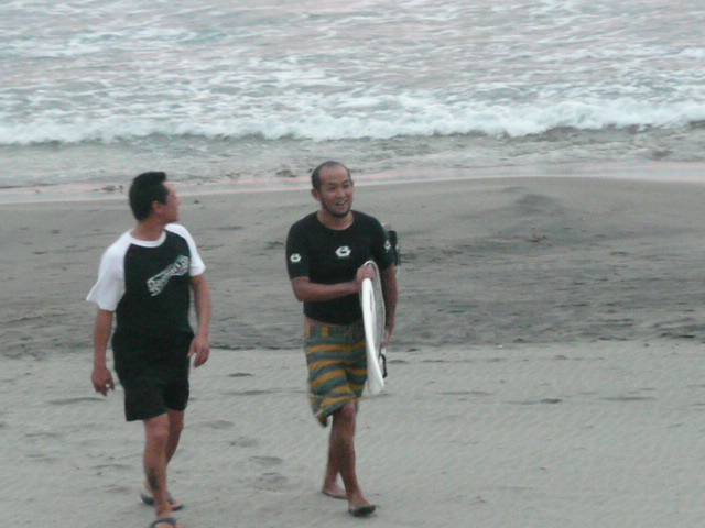 マニラから来ていたサーファーが上がったところで、ノーバディサーフ!