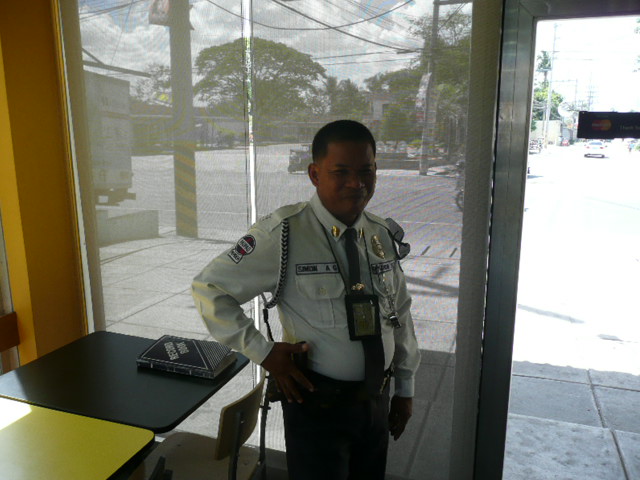 陽気なガードマンは、銃を抜くポーズをリクエストしたら、まんまとやってくれました(笑)