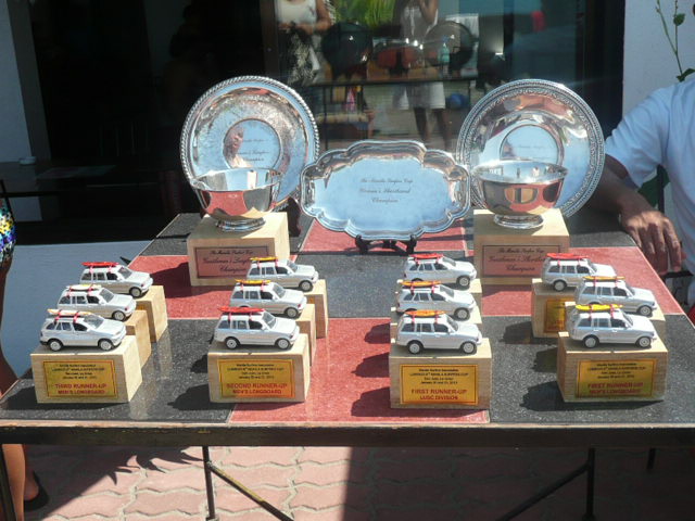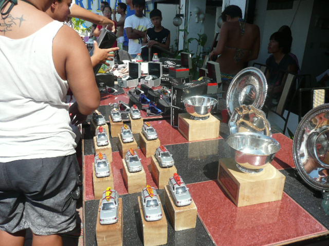 トロフィーと、商品の数々です。なかなかですね~1っ個ちょうだい ダメ、やっぱり!