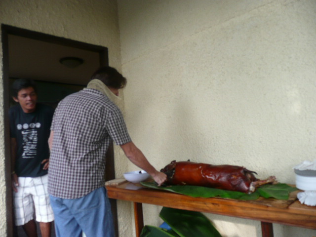 バタバタしてる中、ケーキもレッチョンバブイ(豚の丸焼き)も届き、ほぼ準備完了!