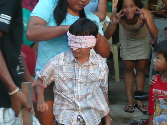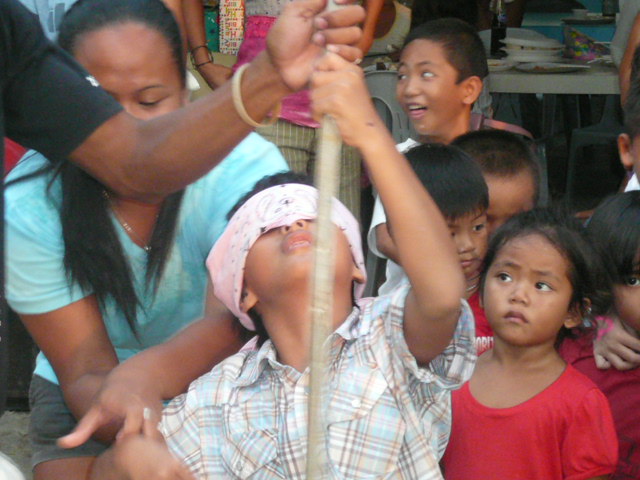 つるした鉢を棒で割るとお菓子や、オモチャが落ちてくる仕組みです。