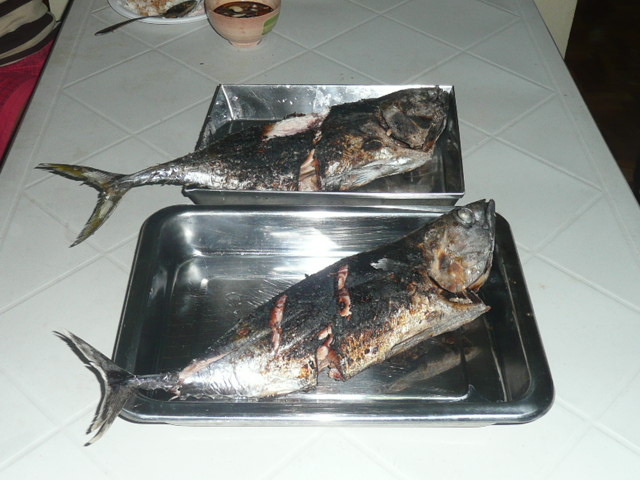 つまみは、カツオ&キハダマグロ!ちょっと焦げてます~?