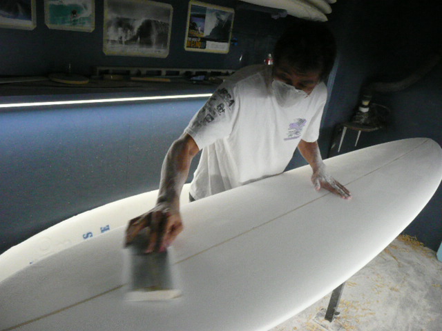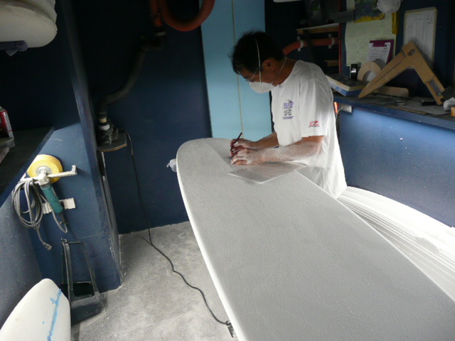 オガマさんこと小川昌男さんに、ニューボードのシェープをして貰いに、