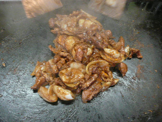 メニューはこれまた恒例の、鳥のホルモン炒め&焼きそば!(オムそば?)