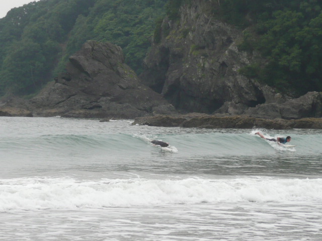 波は、自分の感じでは、フラットです。 乗ろうと思えばのれるサイズ?