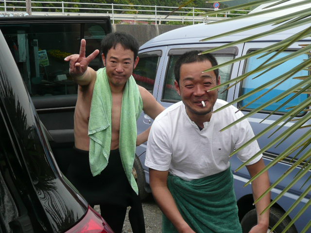 キングもスマイルで上がってきました~良い波乗れたのかな?ウエットきつそうですが~