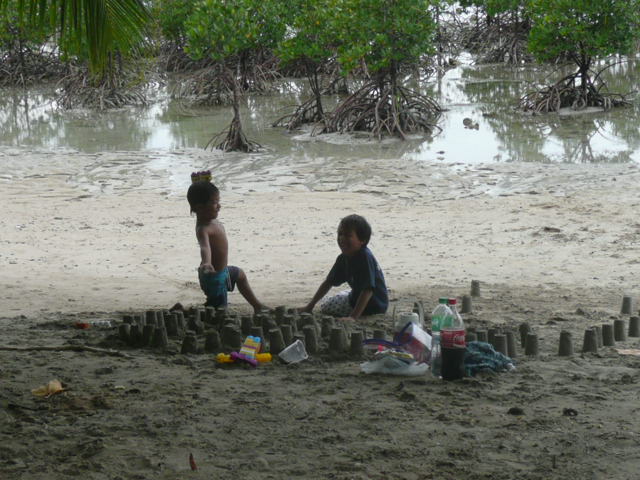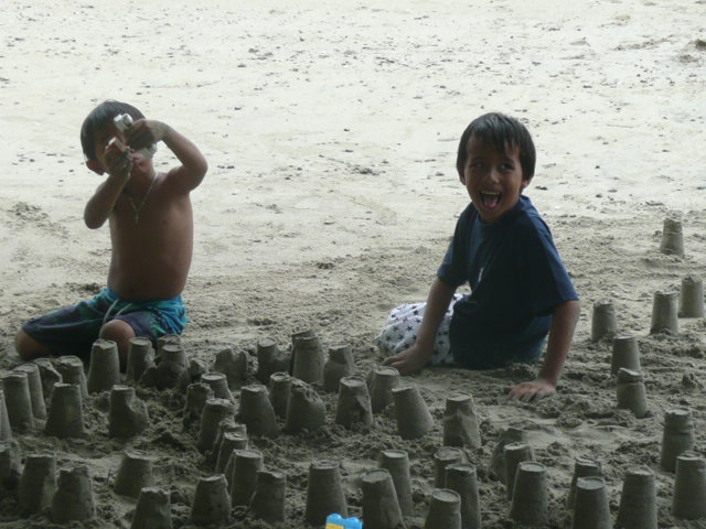 私達がサーフィンしている間ケナンとジェロは、砂遊び!