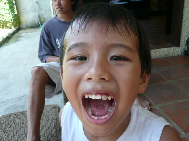 マニラでモールのエスカレーターに乗っている時、マミィの洋服に噛み付いて取れちゃいました。