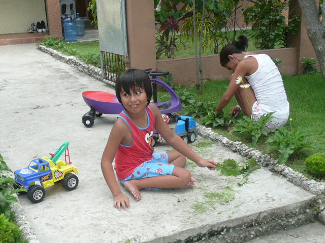 自転車で庭を走り回り、汗だくだくですね~